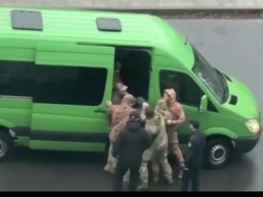 Busification in the most narrow sense of the term refers to a specific method of forced conscription. It features minibuses (or other vehicles big enough to accommodate recalcitrant passengers), into which teams of mobilizers from local recruitment offices–known as “terytorialniy tsentr komplektuvannia ta sotsialnoi pidtrymky” (territorial center of recruitment and social support) or, much more commonly, TTsK (pronounced “Te-tse-ka”)–push men selected on the street or in other public spaces to induct them into the military and, in effect, often into an ongoing and very bloody war against Russia.